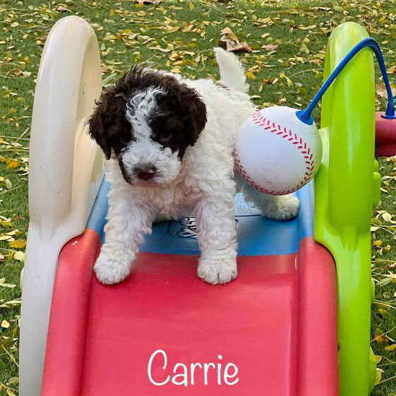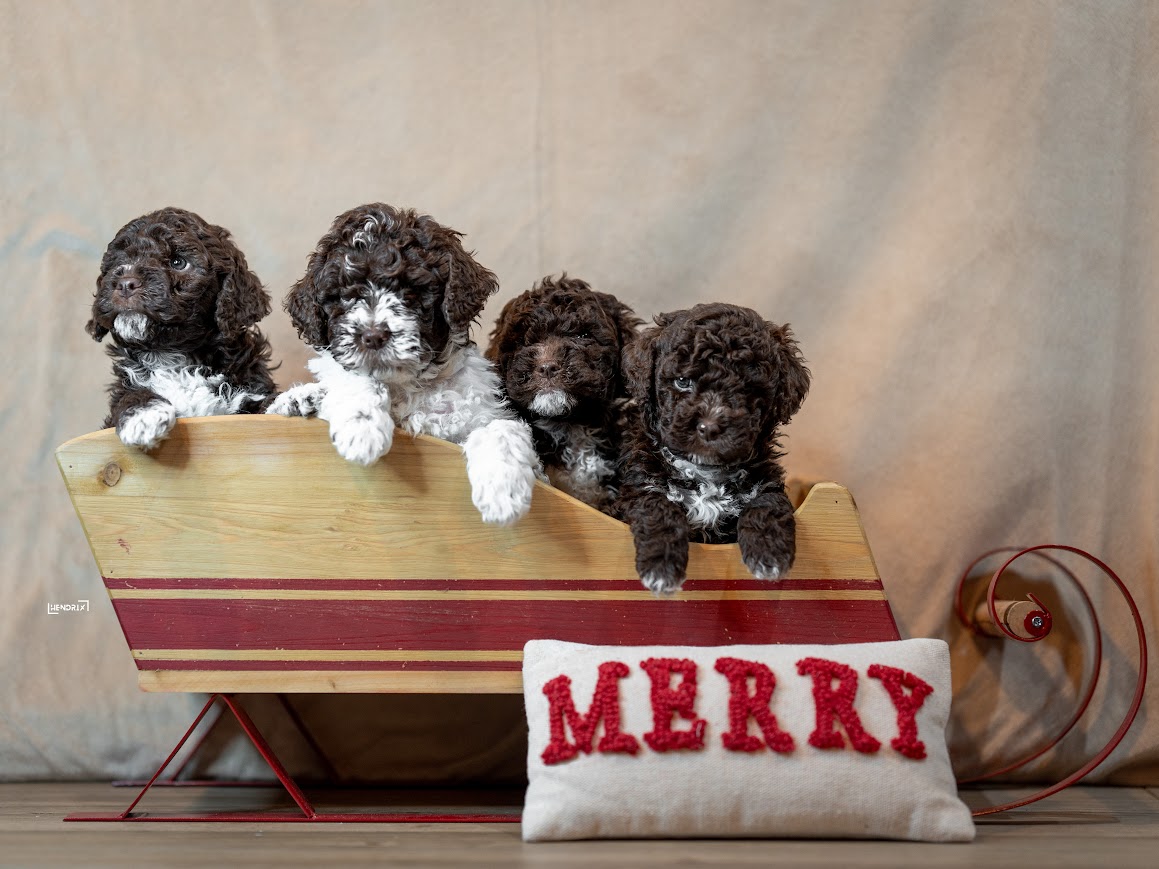 All of our puppies come from health tested parents, have a one year genetic health guarantee that covers hip/elbow dysplasia, Lagotto storage disease, juvenile epilepsy and hereditary eye disease. They will be microchipped, have their first vaccinations and puppy exam, be socialized and introduced to crate training and potty training. We send them home with a bag that includes the food they are on right now, a snuggle puppy, some treats and toys and a scent blanket. We also provide some tips for shopping with a list of our favorite products and training information to help through the transition and in the early days of training. Please call or email me for current puppy pricing and deposit information.